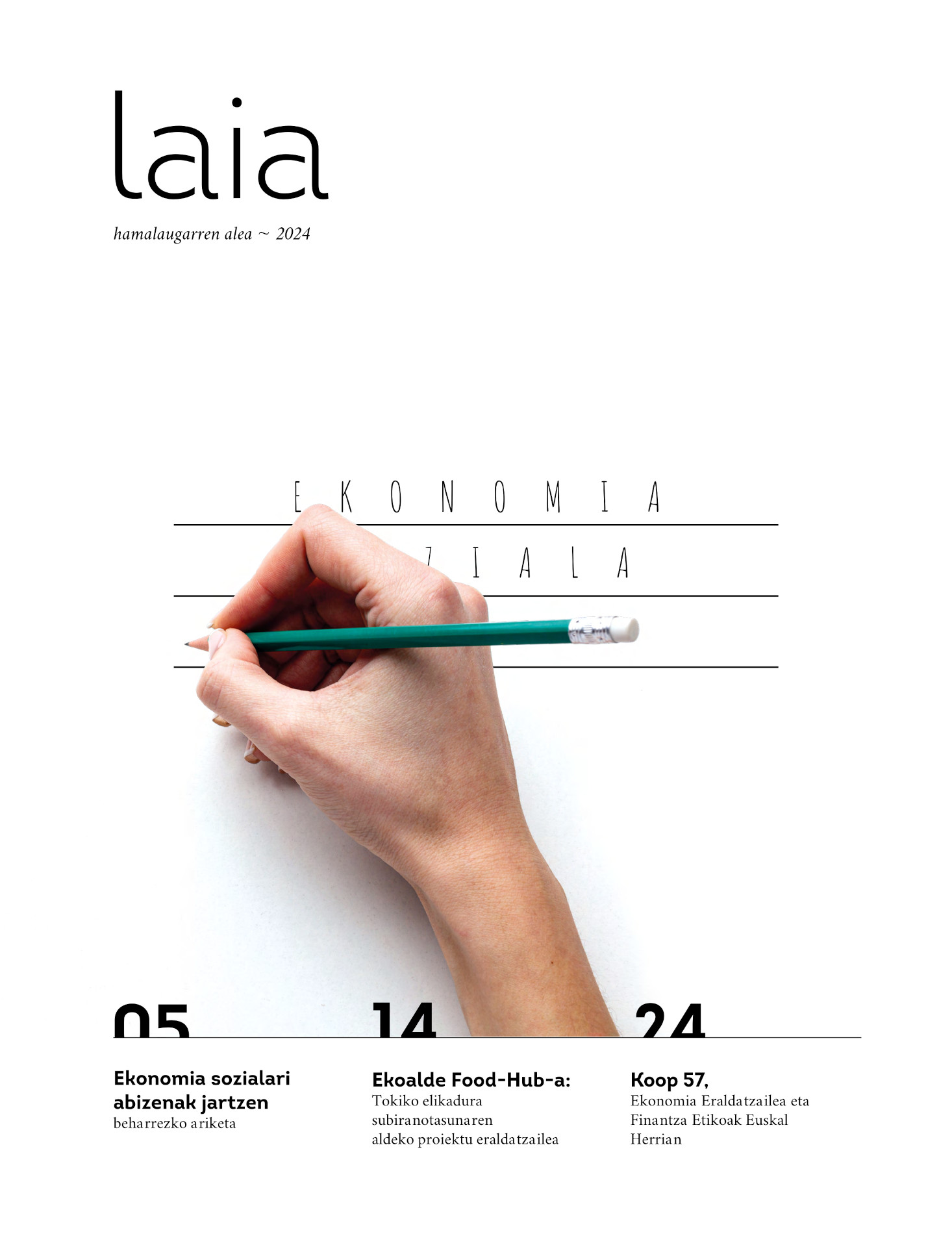 Laia aldizkariaren helburua ekonomia sozial eta eraldatzailearen inguruko hausnarketak eta esperientziak zabaltzea da. Formatu atsegin eta ulerterrazean, aldizkariak tokiko eragileen testigantzak, proiektu berritzaileak eta trantsizio ekosozialarekin lotutako edukiak jasotzen ditu, ikuspegi kritiko eta eraikitzaile batetik.